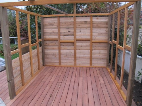 Abri à vélo en Mélèze. Structure en lambourdes