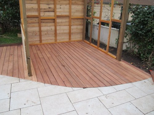 pin traité et de lambourdes en bois exotique.