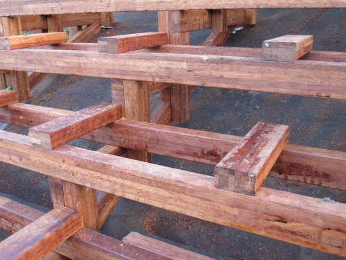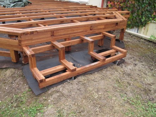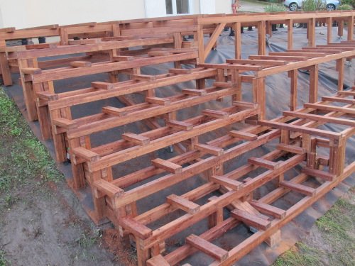 création d’une marche en bois, toujours en lambourdes en Merbau