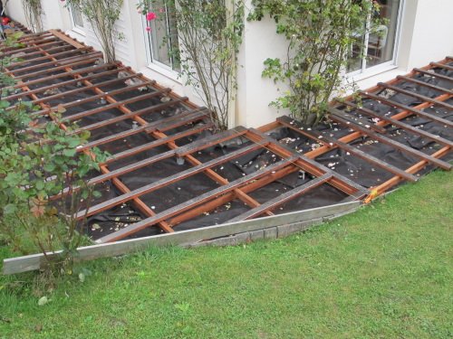 La terrasse existante était complètement hors d’usage. Nous l’avons démontée et mise en décharge.