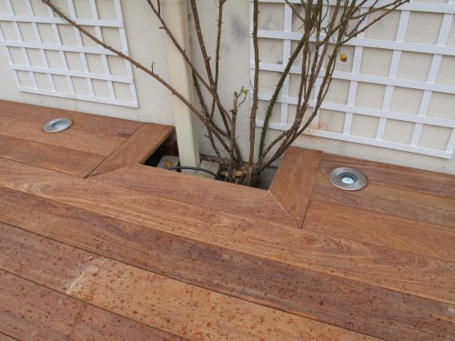 noter l’alignement parfait des lames entre la terrasse basse et la terrasse haute