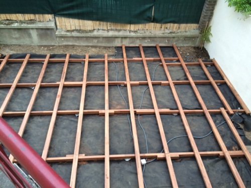 Voici une autre photo de la structure de la terrasse en cours de construction.