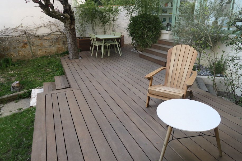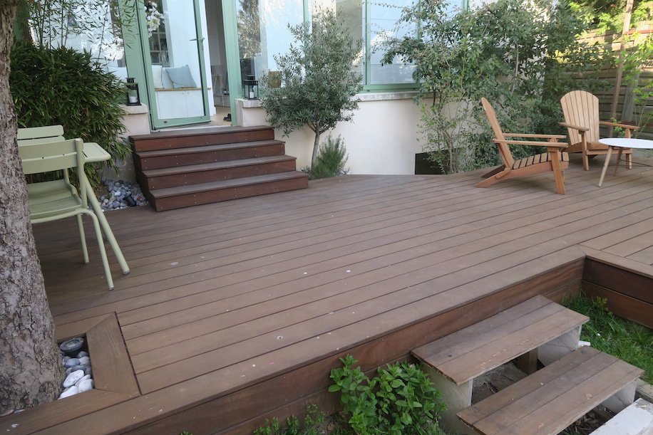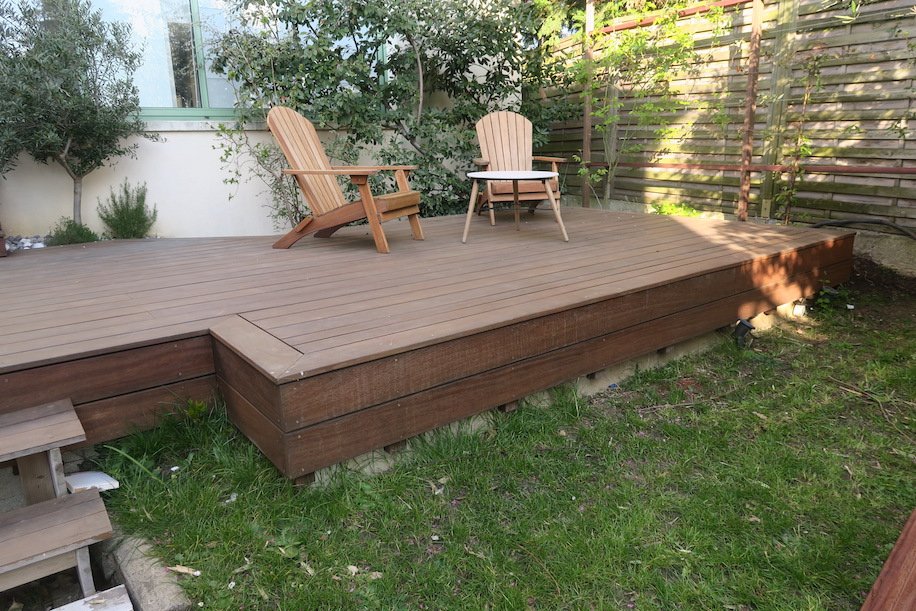 Construction d’une Belle terrasse en Cumaru sur terrain naturel à Suresnes