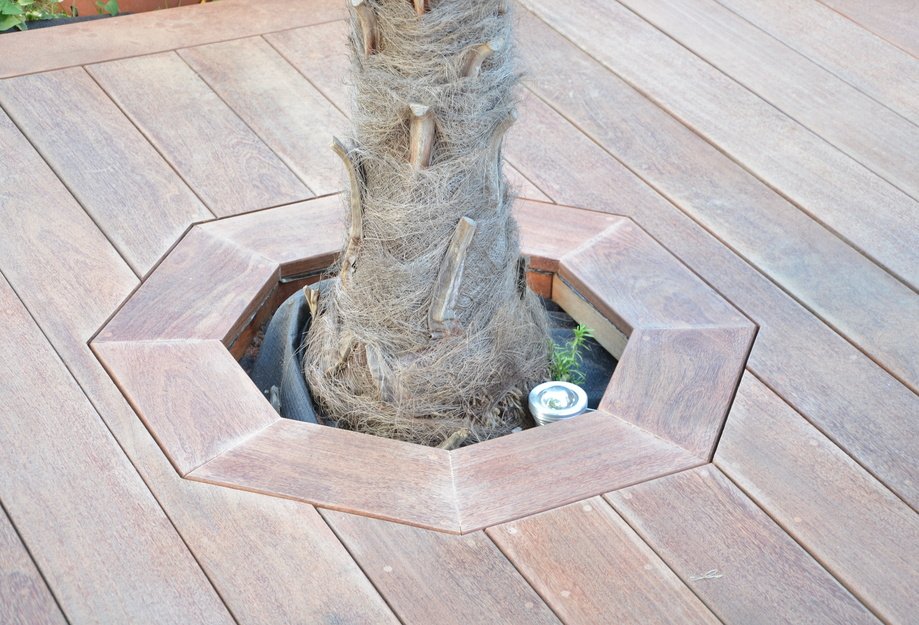 Voici, l’arbre que nous avons entouré avec de jolies finitions en bois.