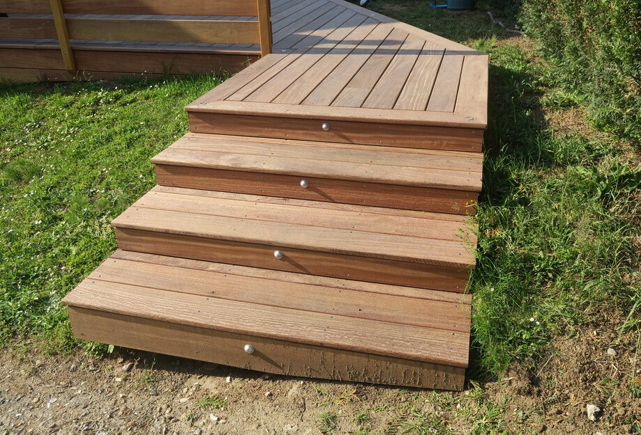 Sur cette photo nous voyons les lames de finitions de la terrasse en bois.