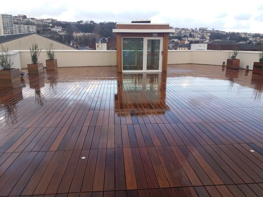 Installation de grandes dalles en bois, Ipé pour un toit-terrasse