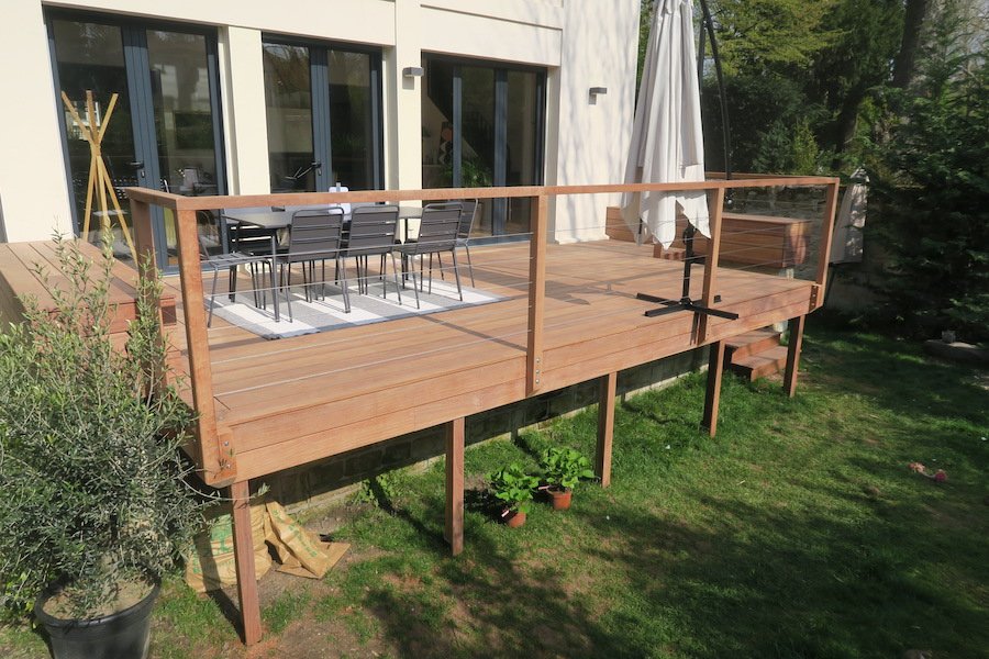 Petite terrasse en bois sur pilotis en Ile-de-France