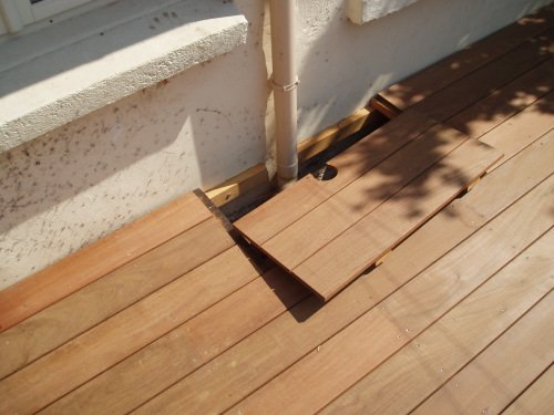 découpe dans la terrasse pour permettre à la porte de s’ouvrir.