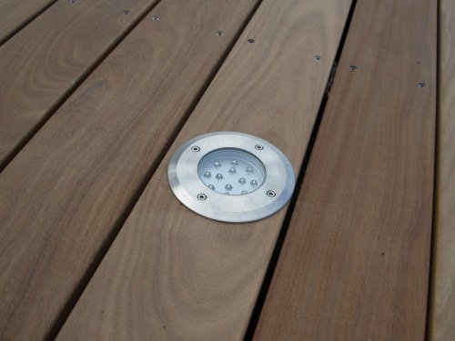 Intégration des spots LED dans le platelage.