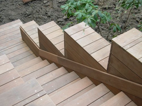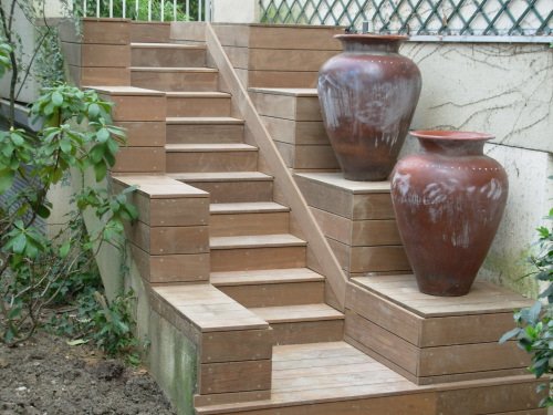 Terrasse en Bois sur terrasse et escalier en carrelage
