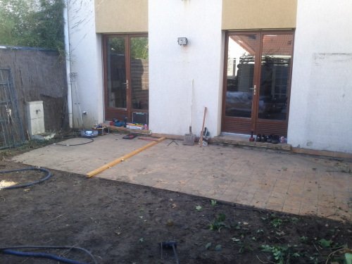 Voilà la terrasse terminée. Nous attendons l’arrivée de Stéphane Marie pour le projet paysager.