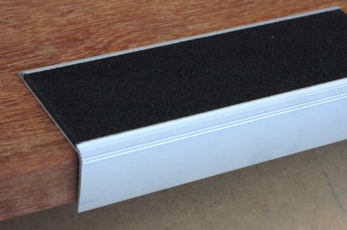 L’insert souple est collé dans les mêmes profilés en aluminium que pour les antidérapants minéraux : même largeur, même longueur.