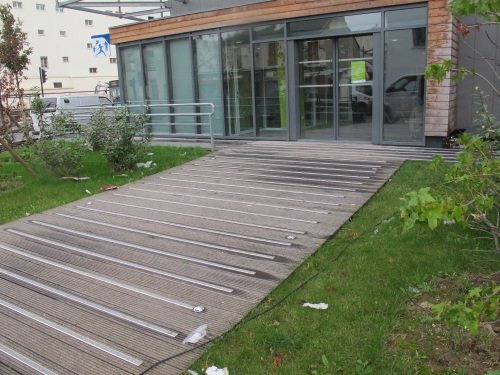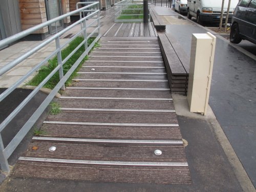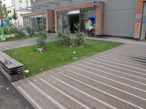 Des glissades ayant été constatées, nous avons posé des bandes antidérapantes