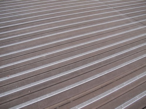 Les lames en bois exotique sont rainurées ce qui une fois de plus en entraîné leur encrassement, le développement de mousse en surface. L’esplanade est devenue ainsi très glissante générant des accidents.