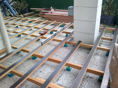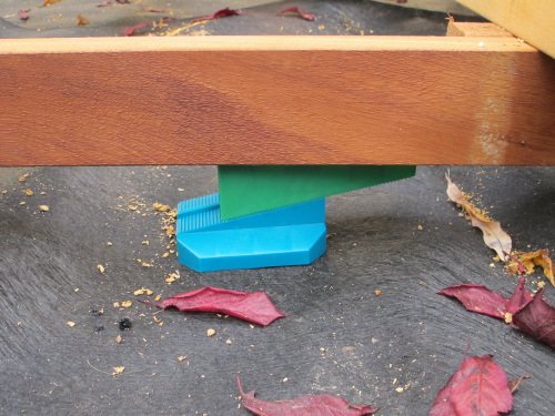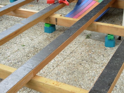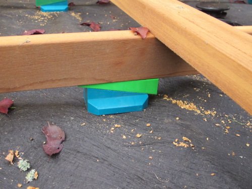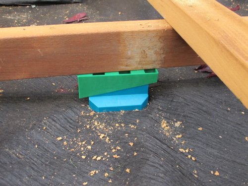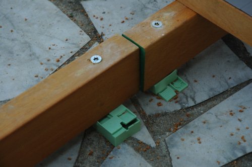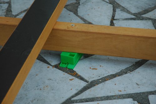 Cales vertes, assemblées avec une vis traversant sur la lambourde.