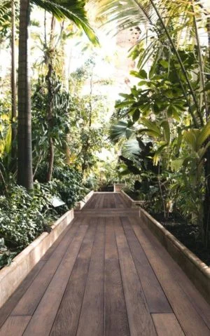 Le coloris Bois Exotique de Millboard offre des teintes naturelles et chaudes qui rappellent les tons des bois durs tropicaux, avec un aspect qui évoque le plancher joliment vieilli des anciennes demeures coloniales.