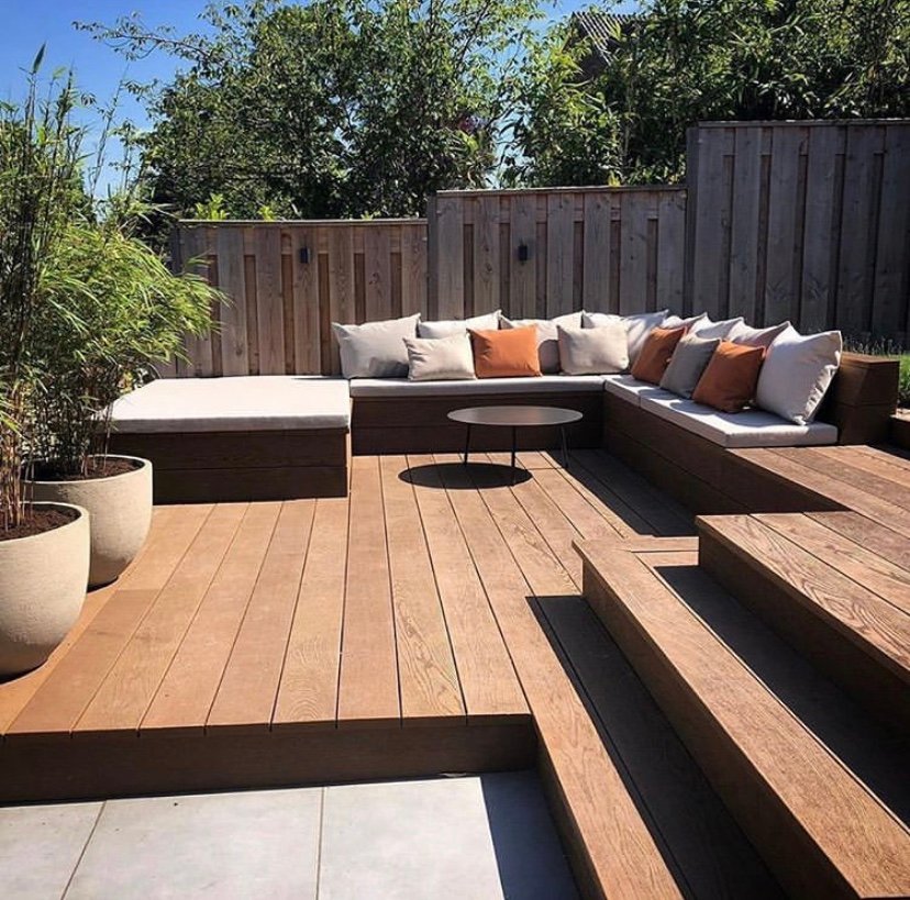 Donnez à votre terrasse une belle couleur brun chaleureux et profond, rappelant le bois exotique tel que l’ipé ou le teck, avec la lame minérale Millboard en Chêne Cuivré.
