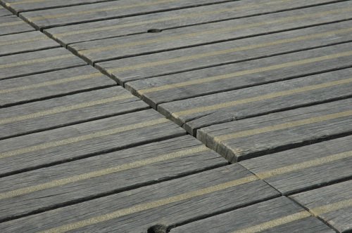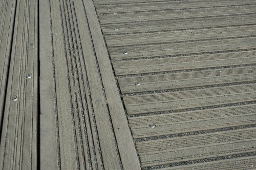 On ne comprend pas pourquoi, toute la passerelle est couverte de graviers. Ce gravier remplit les rainures (soi-disant antiglissantes) ce qui donne une allure plutôt négligée et une sensation d’une surface pas nette.