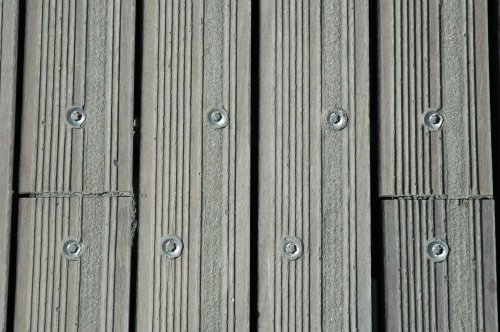 Les lames de terrasse ont été BOULONNÉES directement sur la structure métallique. Le travail de mise en œuvre a dû être considérable et ce choix est discutable. Les boulons sont posés au centre (ou sur un côté…?) de la lame, ce qui risque à terme de favoriser le tuilage. Heureusement, ce risque est minimisé par la faible largeur des lames. Les têtes des boulons sont très visibles et peu esthétiques.