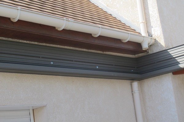 Voici la poutre porteuse qui supporte la pergola et qui assure l’étanchéité, que nous fixons sur le mur.