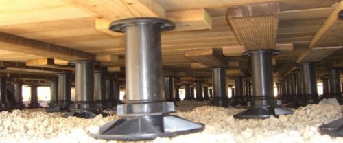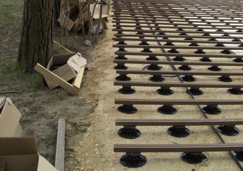 Réalisation de terrasse avec plots PVC réglables sur terrain naturel