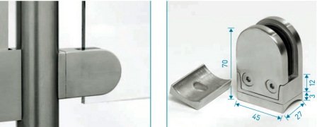 Pince pour verre de 6 à 8 mm à fixer sur un poteau rond de 42,4 mm