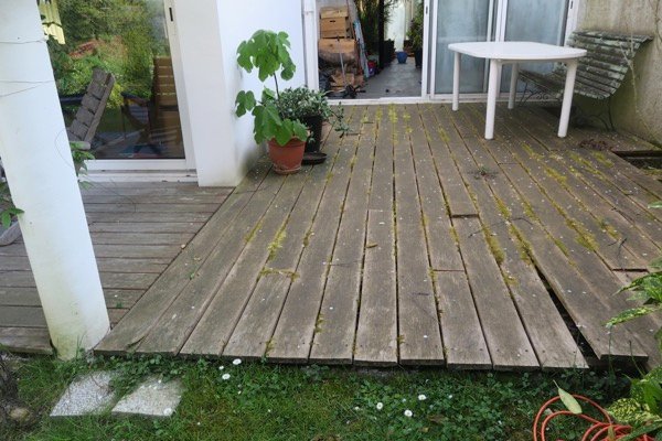La terrasse en bois : le ratage classique. Nous avons démonté cette terrasse et nous l’avons reconstruite une fois de plus, toutes les erreurs ont été commises sur cette terrasse bois.