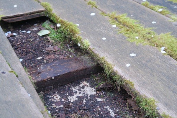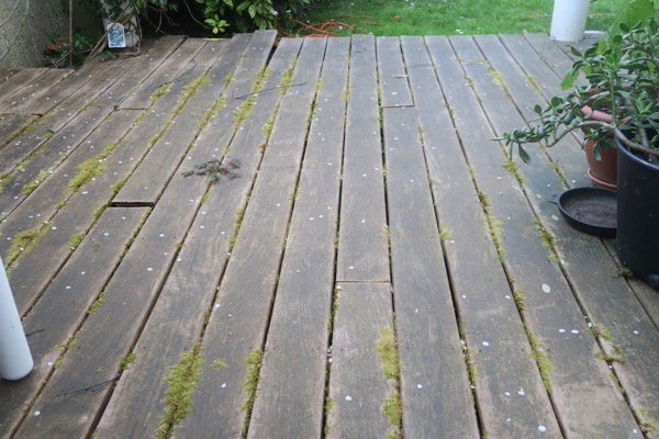 La terrasse en bois envahi par la mousse