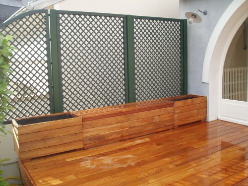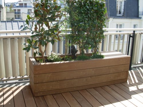 THÈME : JARDINIÈRES ET COFFRES Jardinières et banc sur terrasse en teck Jardinière sur terrasse en ipé Mi jardinière, mi banc sur terrasse en ipé Jardinière et banc en ipé sur terrasse Vous avez un projet ? Parlons-en. Contactez-nous