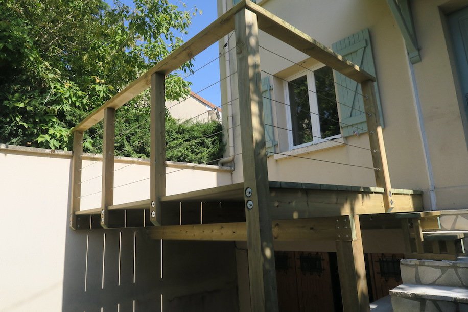 Voici nos belles réalisations de terrasses en bois sur sol dur, c’est-à-dire construites sur dalle béton, anciens dallages, anciens carrelages.