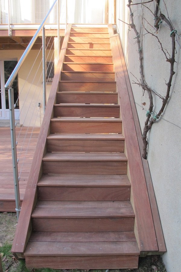 escalier avec son habillage en lames de cumaru
