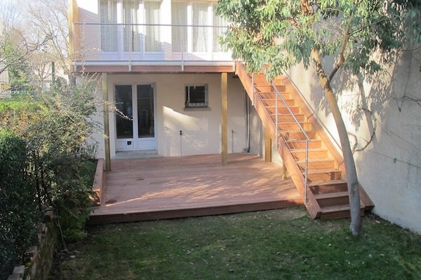 – puis vous trouverez les photos de la terrasse et de l’escalier en cumaru reconstruits par nos soins