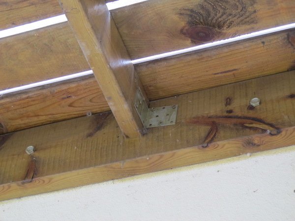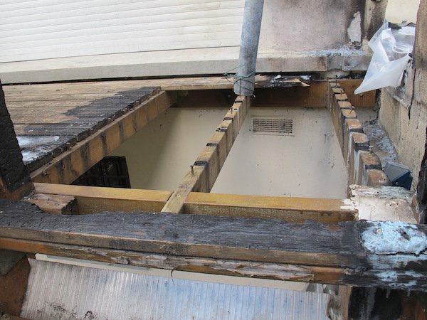 Indépendamment de l’incendie, nous avons eu un choc en voyant comment la structure était construite. Les solives étaient fixées avec des petites équerres et 3 petites vis !